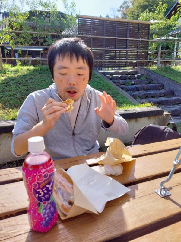 集合場所に到着すると、楽しみにしていたお昼休憩。屋外で食べる昼食は一味違い、利用者さん達も素敵な笑顔を沢山見せてくれました。
