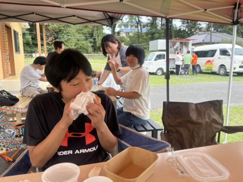 敷地内にテントと椅子を並べ、いざ食べ始めると、