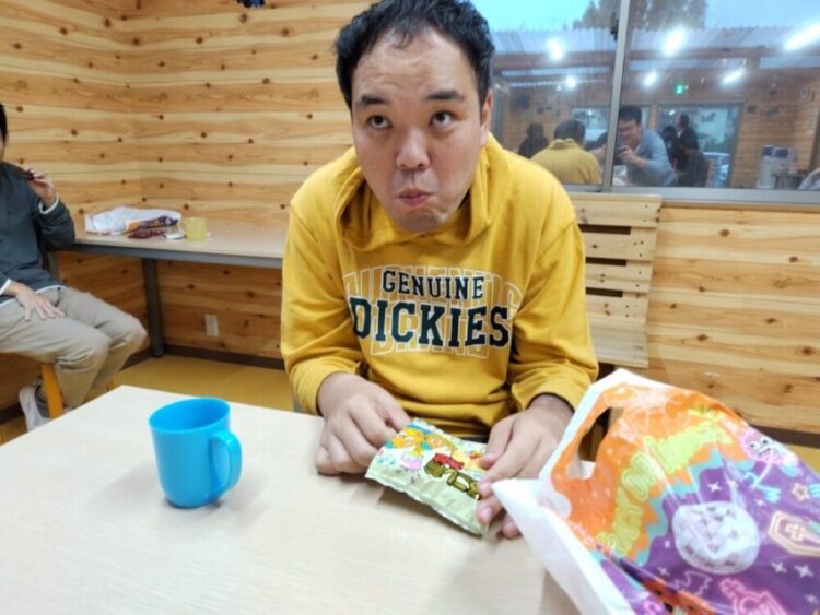 職員からお菓子を受け取った利用者さん達は嬉しそうな様子でほりほっくに戻りました。