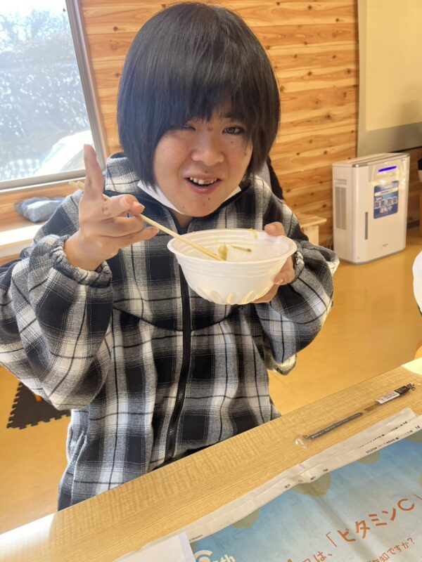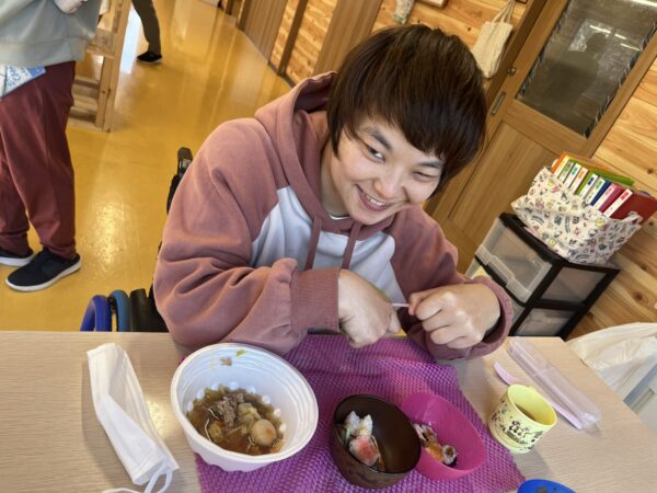 昼食の時間、利用者さん達はとても美味しそうに芋煮を食べていました。